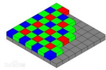 拜尔式是用4个像素的组合计算得到一个像素点的数据,因此需要4个像素相当于色轮滤光片式的像素。如6100万拜尔式的像素9568×6380,对应色轮滤光片式只相当于4784×3190=1526万像素(实际应用中会用算法得到更多的像素点,本质上是有像素损失的)。